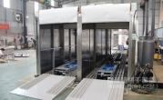 2、外形尺寸:寬4700*高2850*深13900mm,箱體內可同時平排進三臺推車,烘烤時間可獨立設置(見附圖);上料區(qū)長1500mm,設有上料斜坡,便于推車進入緩沖區(qū);兩端緩沖區(qū)各長1700mm,各設有升降平臺,便于推車進出烘烤,爐蓋上加裝0.75KW高溫抽風風機;烘干區(qū)長7620mm,烘干區(qū)前后裝有隔熱卷閘門,加裝感應器,底部設有傳送鏈條;下料區(qū)長1500mm, 加裝斜坡 ,以便推車出料。